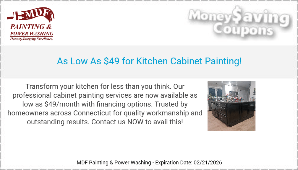 There's no need to go through the hassle of painting your cabinets yourself when we're around. Contact MDF Painting & Power Washing today and schedule your free estimate for stress-free cabinet painting and refinishing in Greenwich, Stamford, Norwalk, and nearby.